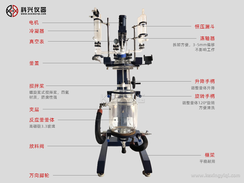 升降雙層玻璃反應釜通過雙層反應釜夾層,注入恒溫的(高溫或低溫)熱溶媒體或冷卻媒體,對反應釜內(nèi)的物料進行恒溫加熱或制冷,并且可以提供攪拌。物料在反應釜內(nèi)進行反應,并能控制反應溶液的蒸發(fā)與回流,反應完畢,物料可從釜底的出料口放出,操作極為方便。是現(xiàn)代化學小樣,中樣實驗、生物制藥及新材料合成的理想設備。