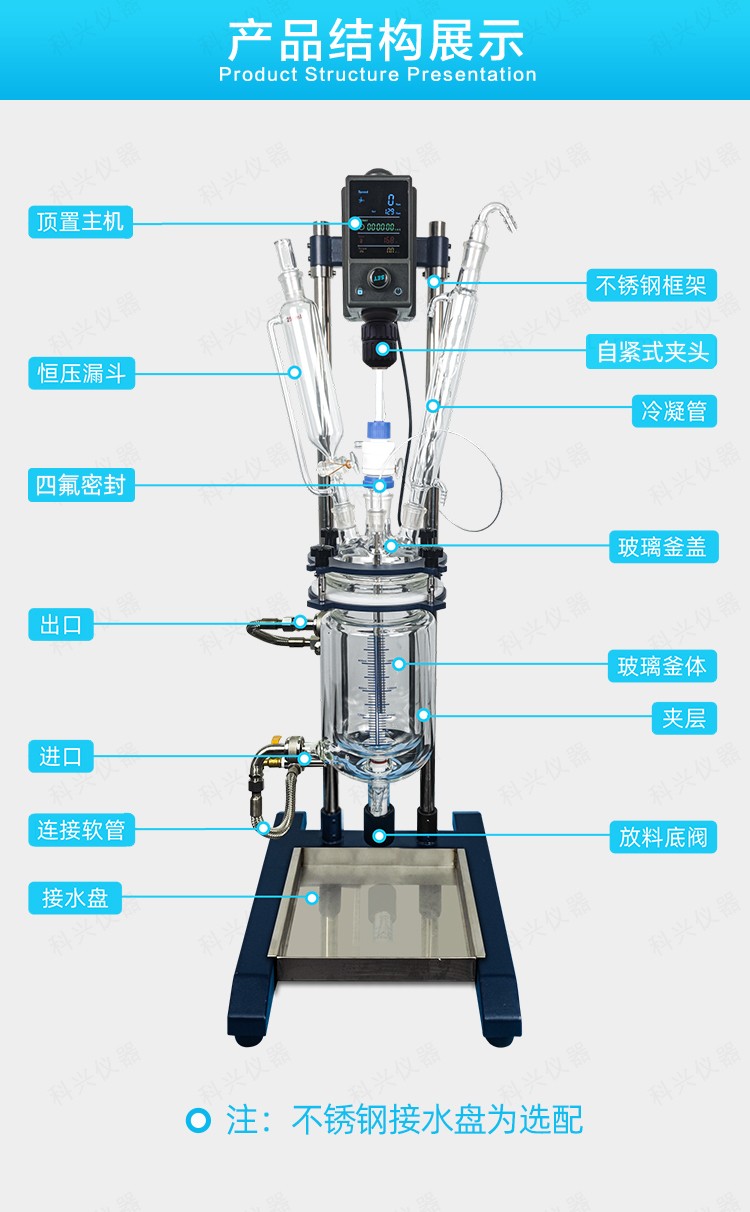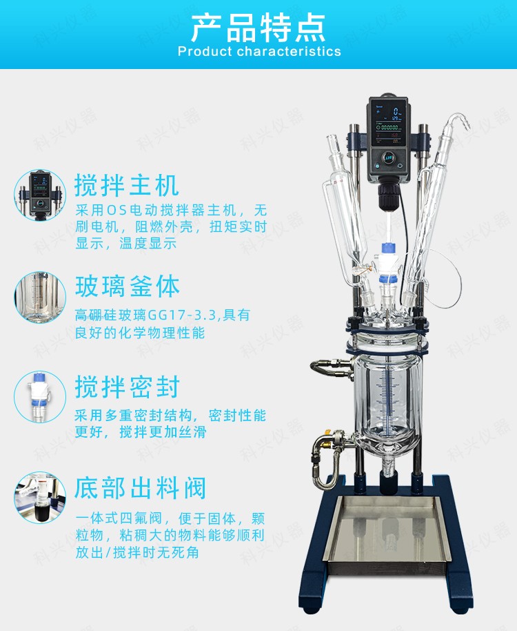 雙層玻璃反應(yīng)釜為雙層玻璃設(shè)計,內(nèi)層放入反應(yīng)溶媒可做攪拌反應(yīng),夾層可通上不同的冷熱源(冷凍液,熱水或熱油)做高溫反應(yīng)(配置相應(yīng)的循環(huán)油浴鍋,溫度可以達到300℃)或低溫反應(yīng)(配置相應(yīng)的低溫冷凍液循環(huán)系統(tǒng),溫度可以達到-80℃),也可選擇加熱制冷一體循環(huán)機;在設(shè)定恒溫條件下,在密閉的玻璃反應(yīng)器內(nèi),可根據(jù)使用要求在常壓或負壓條件下進行攪拌反應(yīng),并能做反應(yīng)溶液的回流與蒸餾,使用中可以抽成真空,從而做真空反應(yīng)。是現(xiàn)代精細化工、生物制藥和新材料合成的理想中試、生產(chǎn)設(shè)備。它的這種設(shè)計使試驗更加的安全,更加的方便。