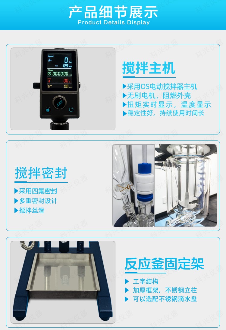 公司又根據(jù)客戶具體使用環(huán)境做出1-5L小型玻璃反應(yīng)釜升級款,采用我司OS-Pro系列攪拌器主機作為核心主機,一體大屏顯示轉(zhuǎn)速,定時,溫度和實時的電機扭矩。